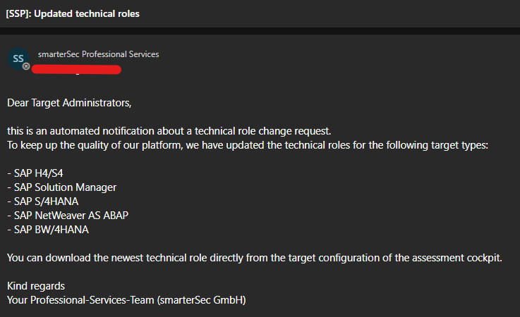 Target-Administratoren erhalten eine E-Mail-Benachrichtigung, sobald neue technische Scan-Rollen verfügbar sind.